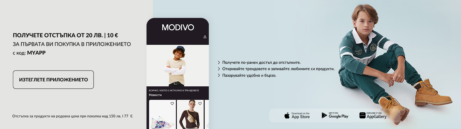 MODIVO е мястото, където пазаруването за най-малките става лесно и приятно. Иновативната полска мултибренд платформа предлага над 300 000 продукта и над 1700 марки, като Reebok, Mayoral, Reima, Geox, adidas, Nike, Champion, Lasocki Kids, Vans, Crocs и Froddo.