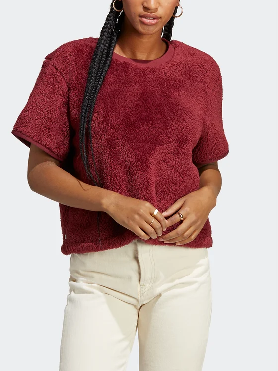 adidas Тишърт Essentials+ Fluffy T-Shirt HY1710 Червен Loose Fit