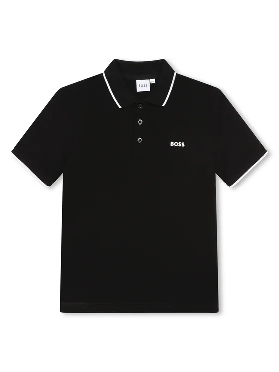 BOSS Тениска с яка и копчета J25P26 D Черен Regular Fit