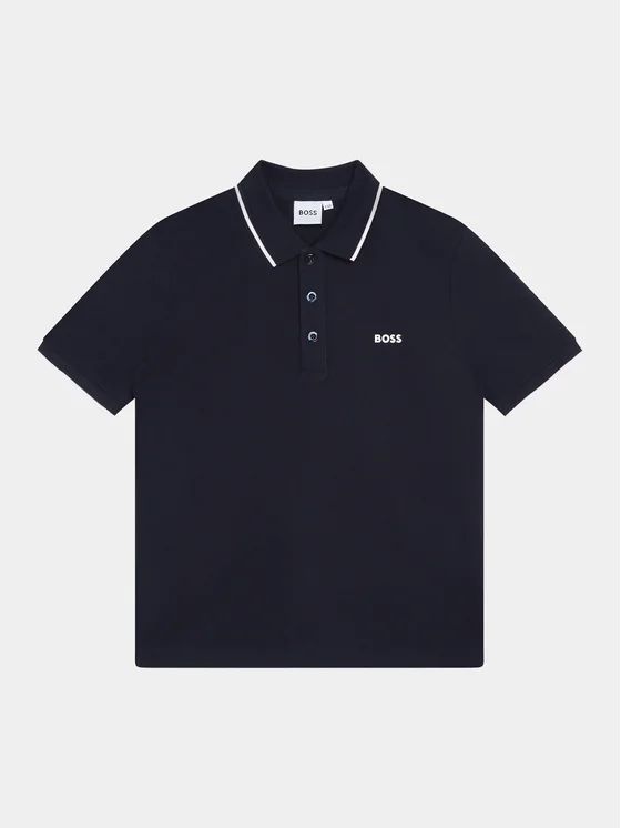 BOSS Тениска с яка и копчета J25P26 D Тъмносин Regular Fit