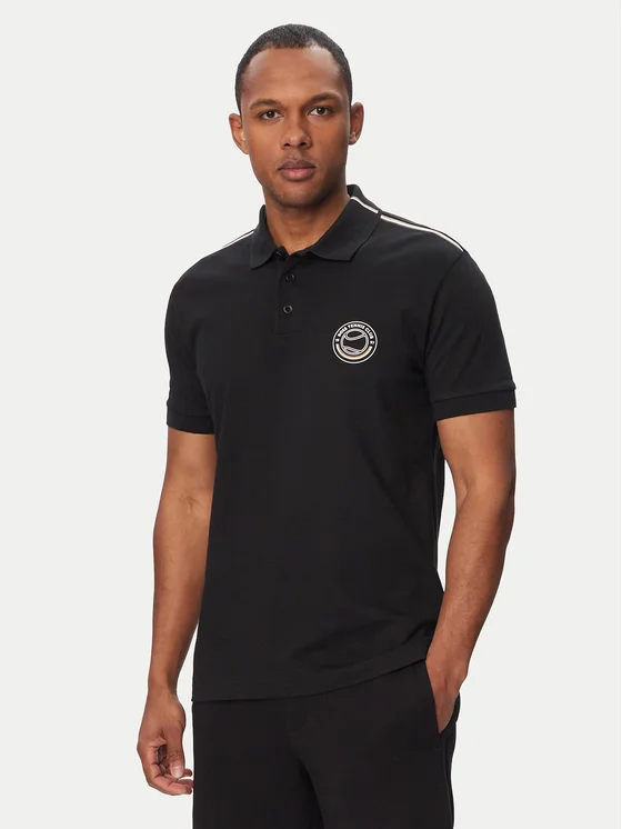 BOSS Тениска с яка и копчета Open 50560261 Черен Regular Fit
