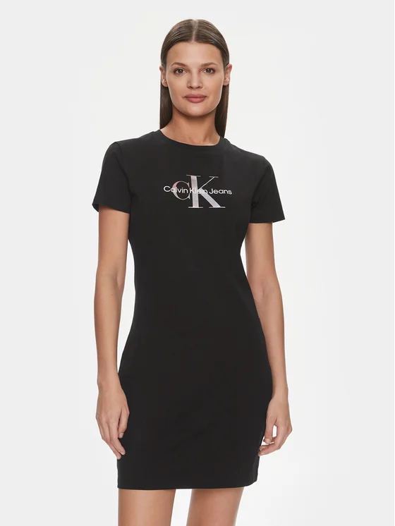 Calvin Klein Jeans Ежедневна рокля Diffused Monologo J20J223056 Черен Slim Fit