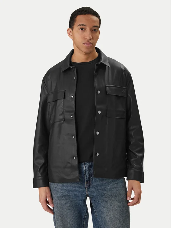 Calvin Klein Jeans Яке от имитация на кожа LV04RE404G Черен Regular Fit
