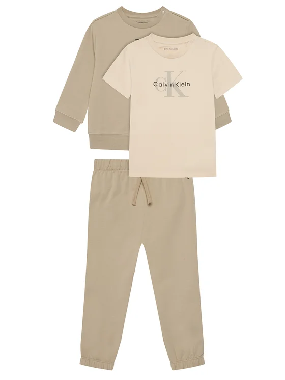 Calvin Klein Jeans Комплект суитшърт, тениска и панталон Monogram IN0IN00336 Бежов Regular Fit