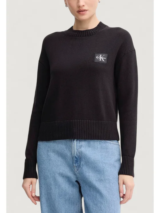Calvin Klein Jeans Пуловер CK EMBRO BADGE SWEAT Черен Sweat Fit