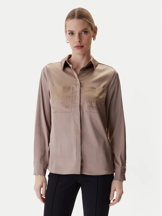 Guess Риза W5RH40 WFQC2 Кафяв Regular Fit