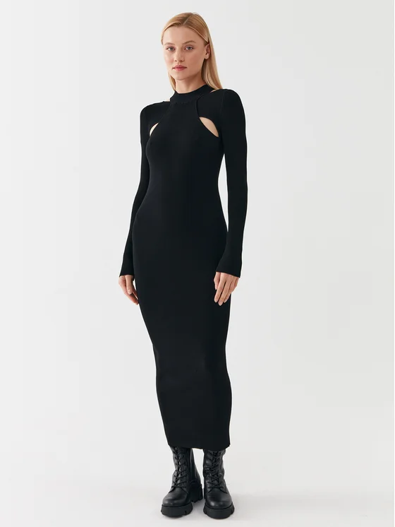 HUGO Плетена рокля 50493747 Черен Slim Fit