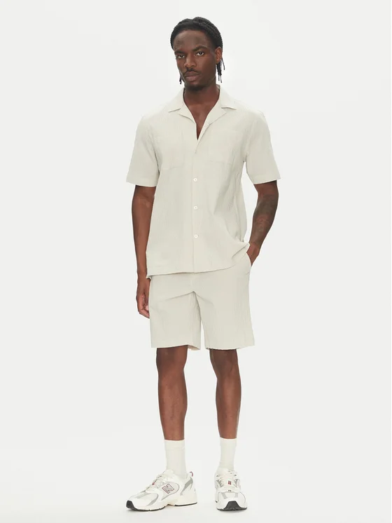 Lindbergh Комплект от риза и текстилни шорти 30-203575SET Бежов Regular Fit