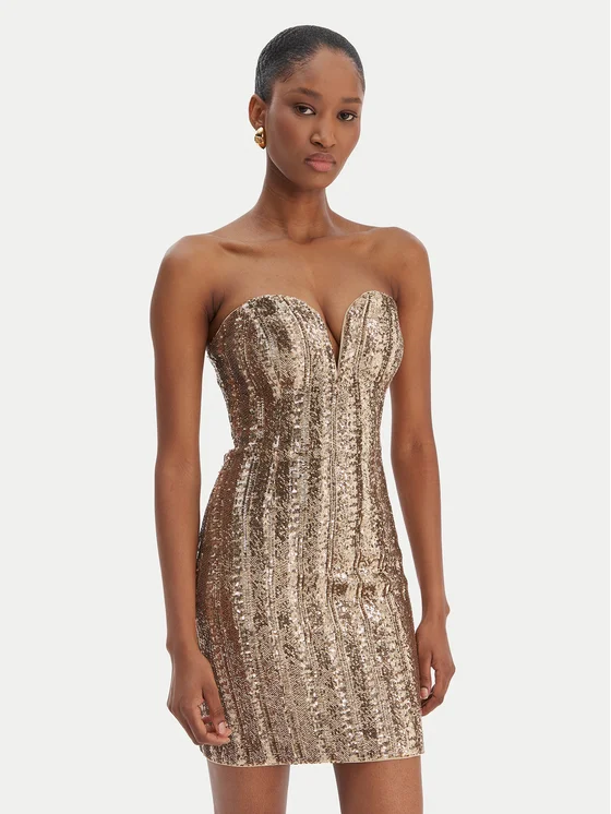 Marciano Guess Коктейлна рокля 6RGK00 6357A Златист Slim Fit