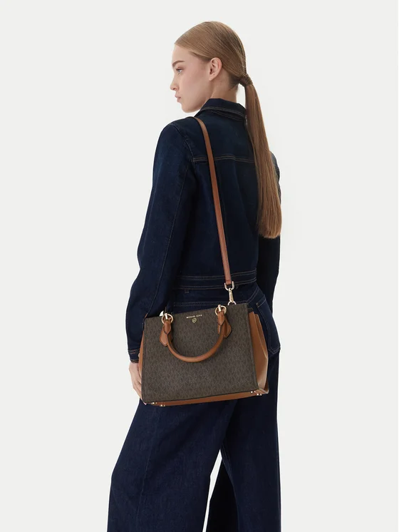 Малката дамска чанта Michael Michael Kors е елегантен аксесоар, който впечатлява както със стил, така и с функционалност. Изработена от висококачествена имитация на кожа, чантата има твърда конструкция, която осигурява дълготрайна издръжливост и естетичен вид. Благодарение на възможността за регулиране дължината на ремъка и закрепения ремък, можеш да я носиш на рамото или в ръка, като я адаптираш към собствените си нужди. Практичните джобове вътре позволяват съхранение на телефон и портфейл, а отделението, затворено със цип, гарантира безопасността на съдържанието. Кракчетата отдолу предпазват чантата от замърсяване. Това е идеален избор за жени, които ценят съчетанието на класа и комфорт.