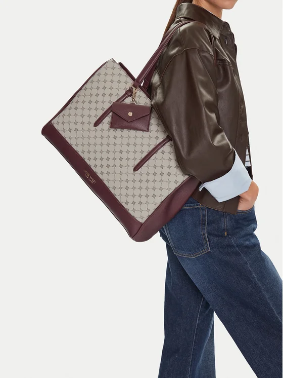 Стилната чанта Nine West е идеалният избор за жени, които ценят практичността и елегантността. Изработена от висококачествен синтетичен материал, тя впечатлява с издръжливост и прецизност на изработката. Нейната твърда конструкция и практичният размер, който побира формат A4, я правят идеална както за ежедневието, така и за по-взискателни поводи. Монограмният десен добавя ексклузивен характер, а крачетата на дъното предпазват чантата от замърсявания. Допълнително предимство е прикрепящата се чантичка, която увеличава нейната функционалност. Заложи на вечен дизайн и удобство!