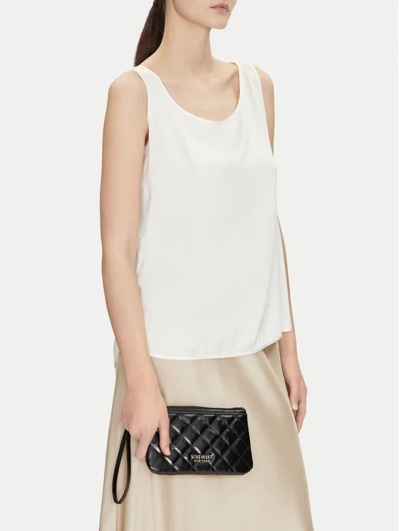 Черната чанта Nine West е елегантен аксесоар, който идеално допълва всяка визия. Изработена от висококачествен синтетичен материал, тя се отличава с твърда структура, което осигурява нейната издръжливост и естетичен вид за дълго време. Практичният цип гарантира безопасността на съхраняваните предмети, а минималистичният дизайн без дръжки придава модерен характер. Идеална за всякакъв повод, както за работа, така и за вечерно излизане. Изберете чантата Nine West, за да подчертаете своя стил и да се наслаждавате на удобството при използване всеки ден.
