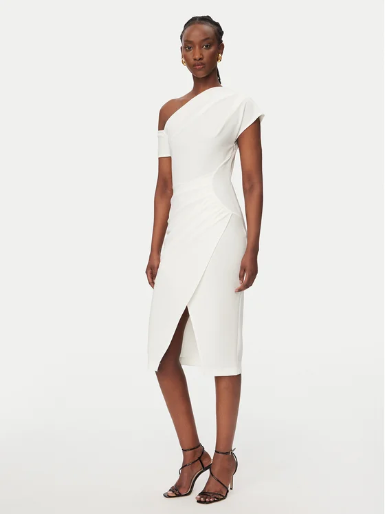 Rinascimento Коктейлна рокля CFC0127793003 Бял Slim Fit