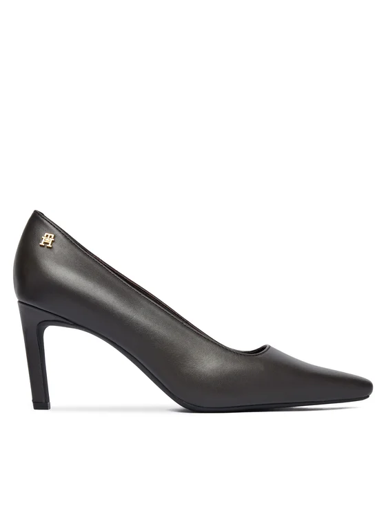 Tommy Hilfiger Обувки на ток Th Logo Lth Pump Slanted Hl FW0FW09008 Черен