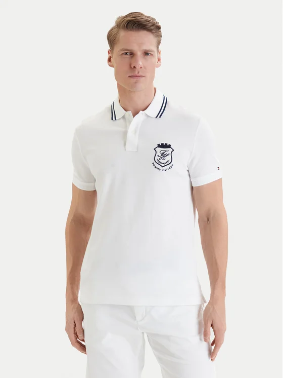 Tommy Hilfiger Тениска с яка и копчета Badge MW0MW43061 Бял Regular Fit