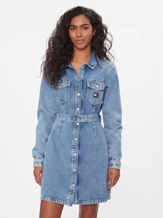 Tommy Jeans Дънкова рокля DW0DW16716 Син Slim Fit