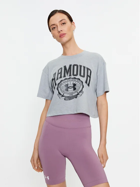 Under Armour Тишърт Ua Collegiate Crest Crop Ss 1379402 Сив Loose Fit