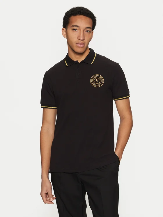 Versace Jeans Couture Тениска с яка и копчета 78GAGT00 Черен Regular Fit
